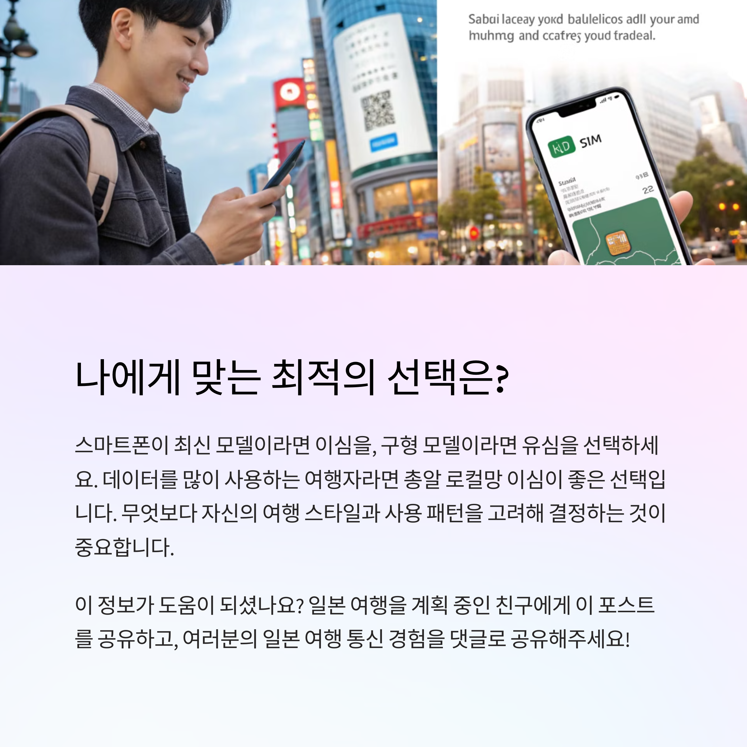 일본 여행을 떠나기 전, 유심 또는 이심 중 어떤 것을 선택할지 고민되시죠?