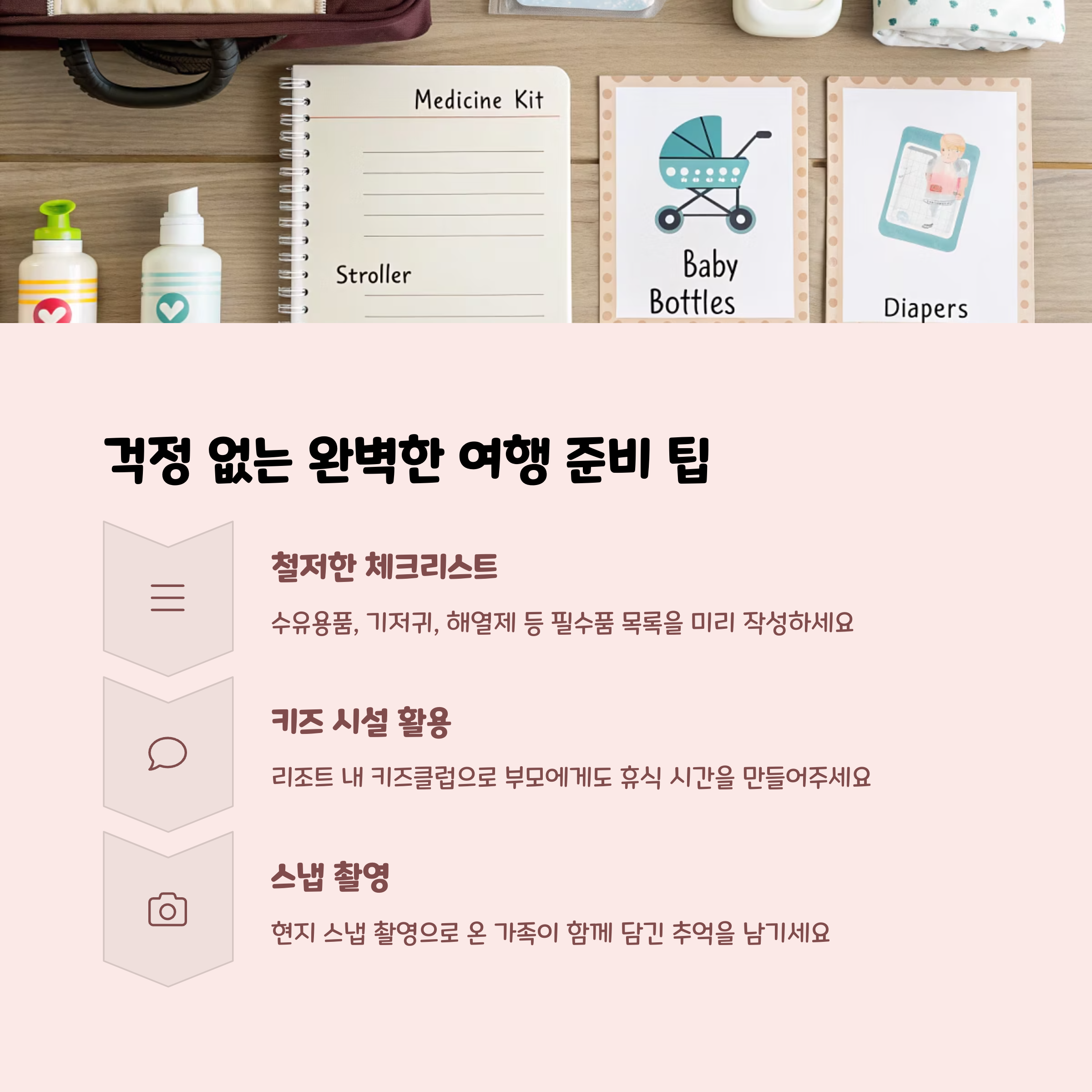 여권, 예방접종증, 상비약, 장난감 준비 필수
