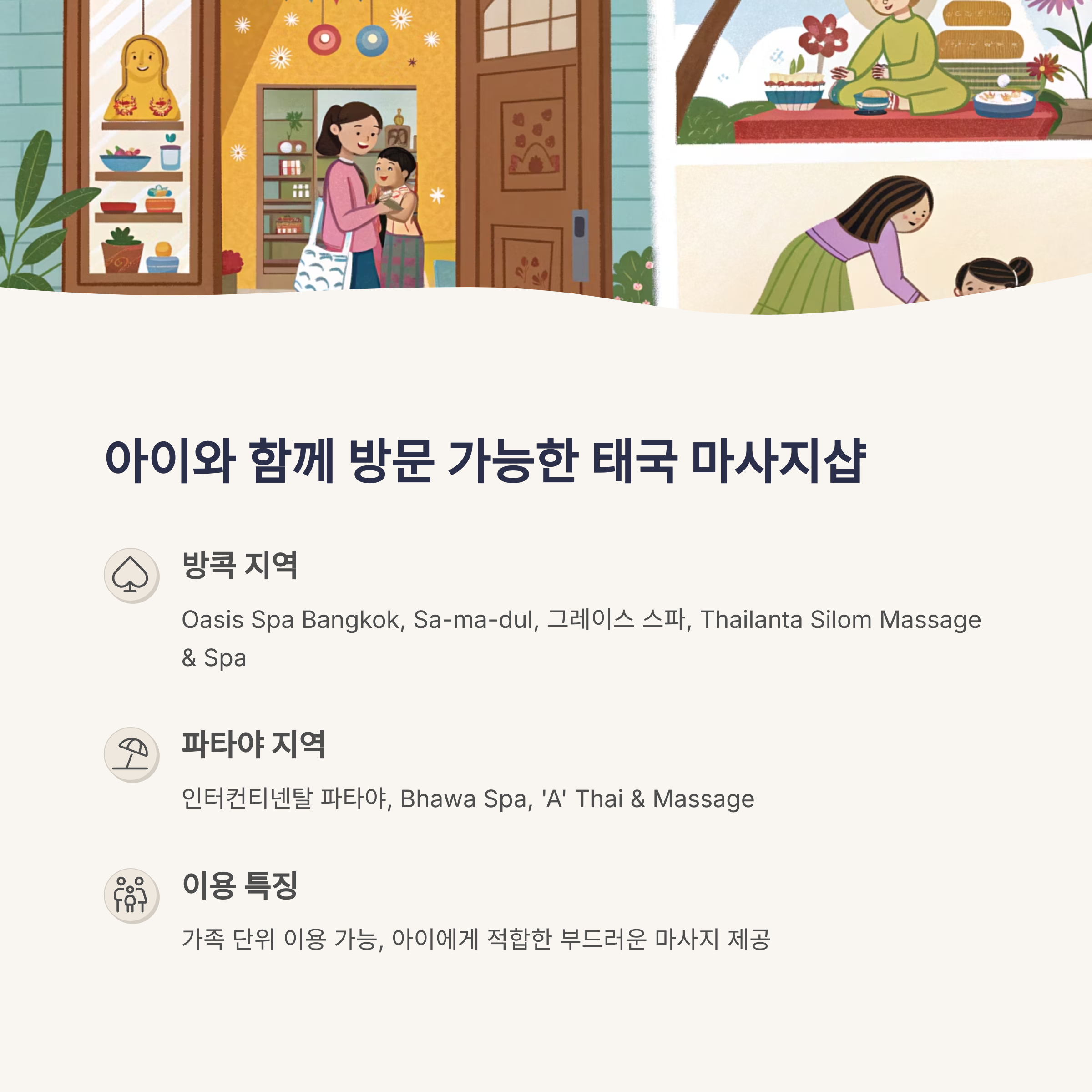 오늘은 태국에서 아이와 함께 방문할 수 있는 마사지샵과 그 특징을 소개해 드리겠습니다.