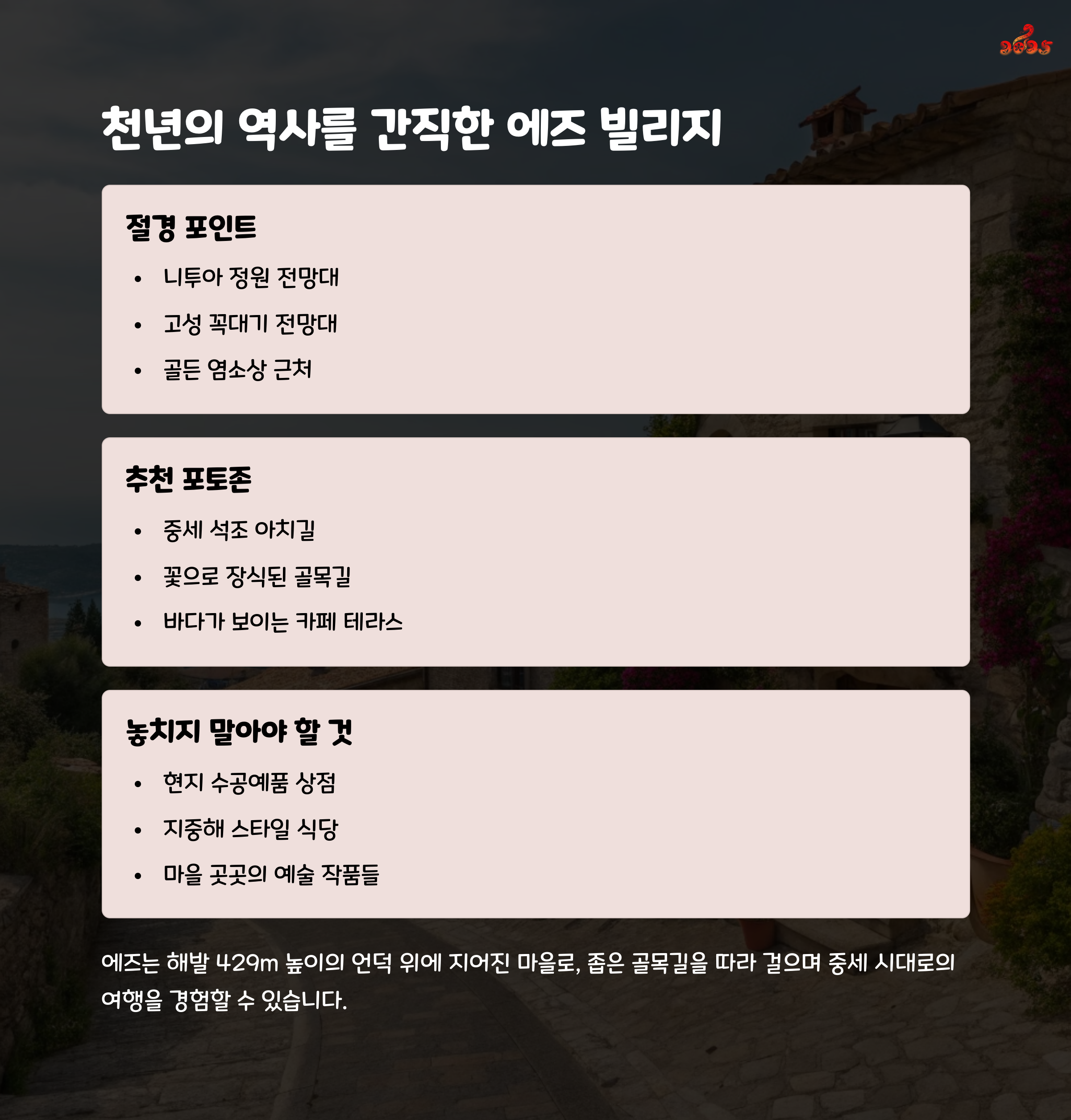 | 주요 명소 | 에즈 정원, 향수공장, 몬테카를로 카지노 |